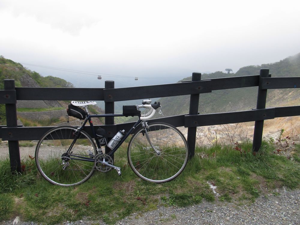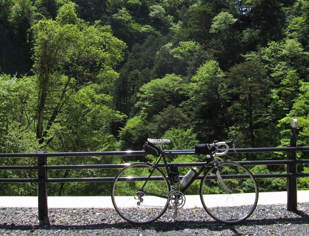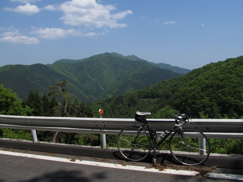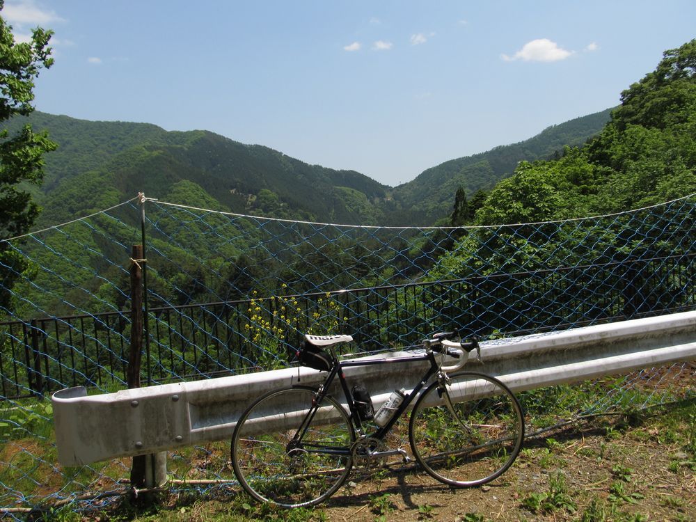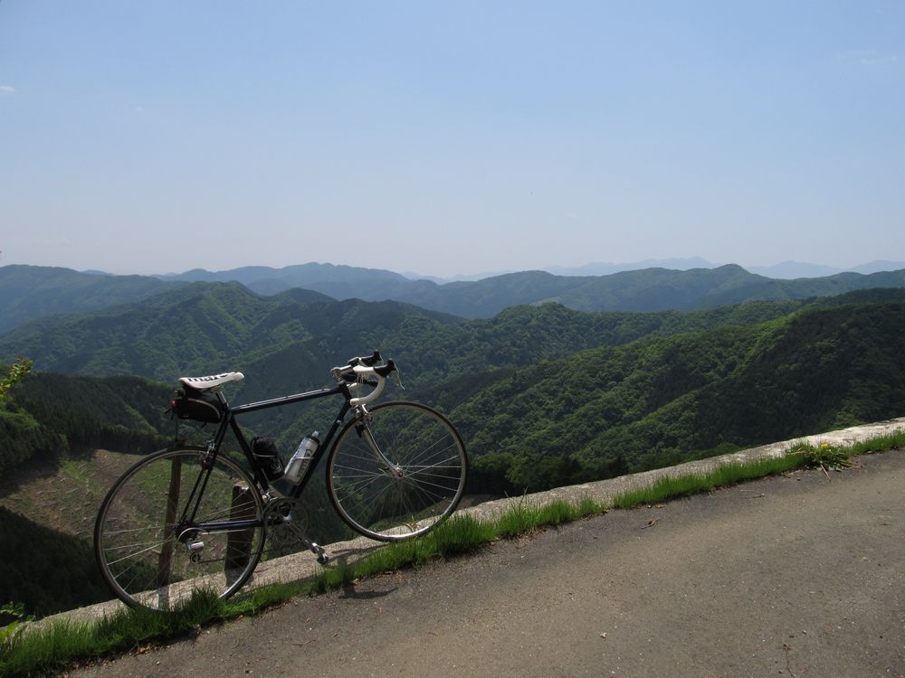 修理中にサイクリストが2人、風張林道を上ってきたが、2人目の人は、赤いケルビムの戦闘的なバイクで、カッコ良かったなあ。多分スチールだろう。