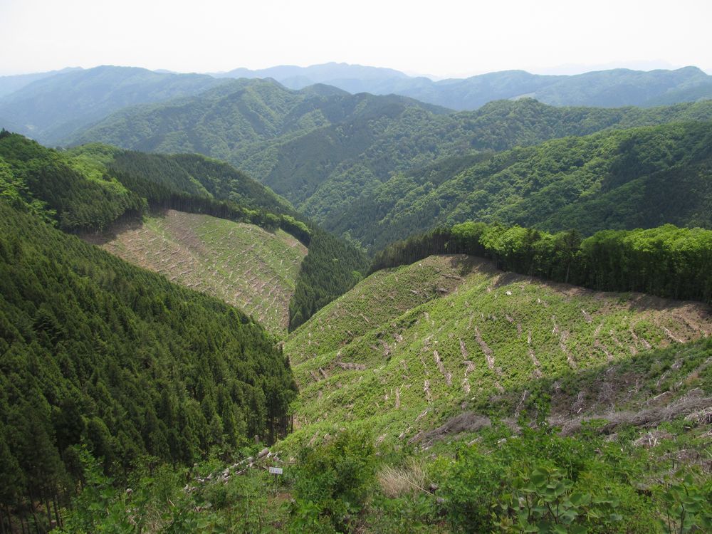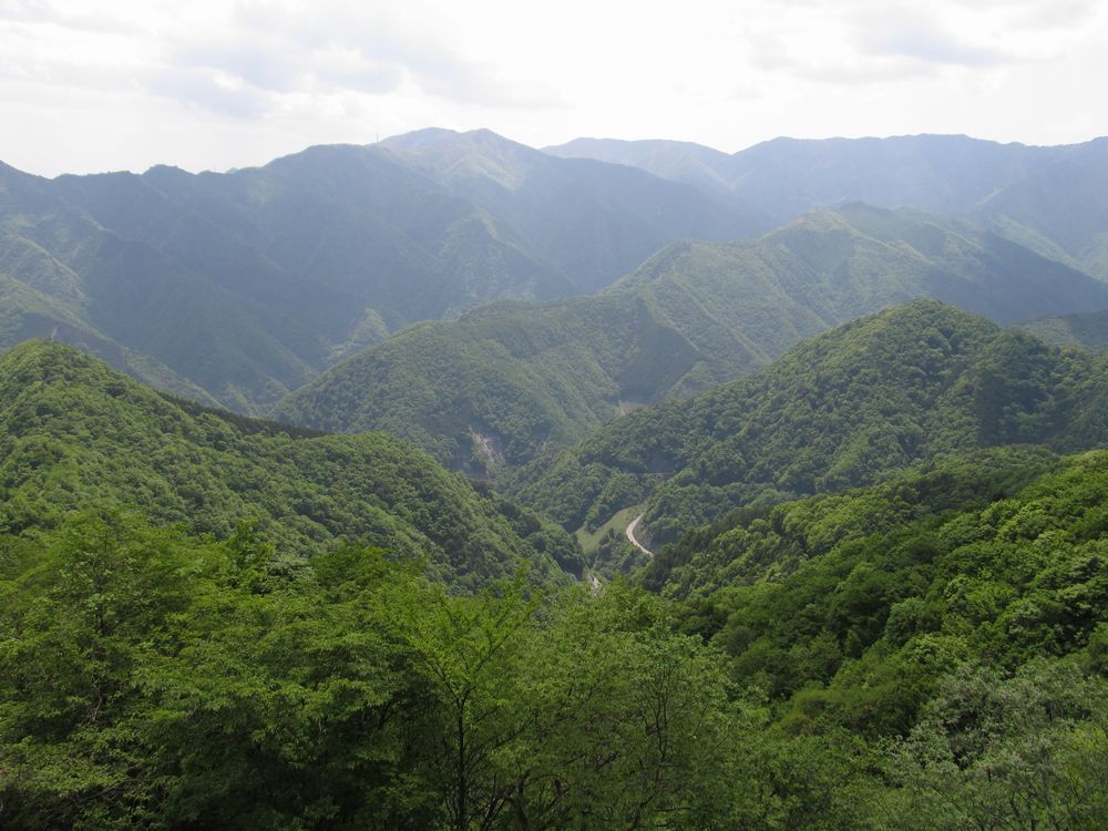 奥多摩周遊道路のバイクの音が聞こえるようになってくると、突然、伐採地に出て、絶景が広がった。