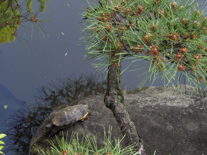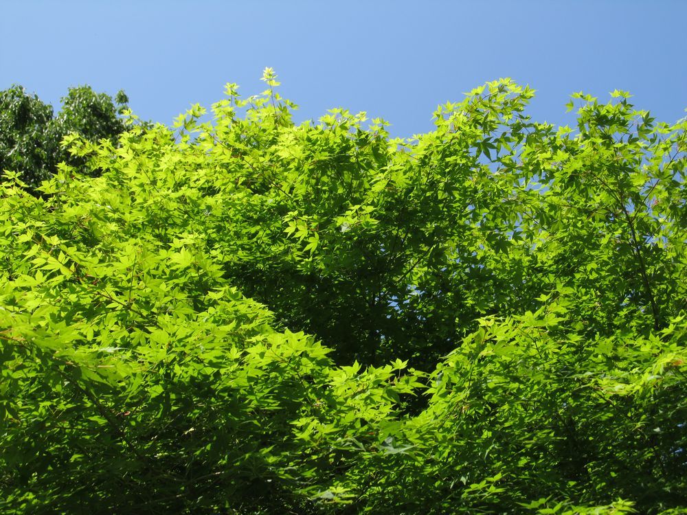 新緑のモミジに日が透けて、イイ感じ。