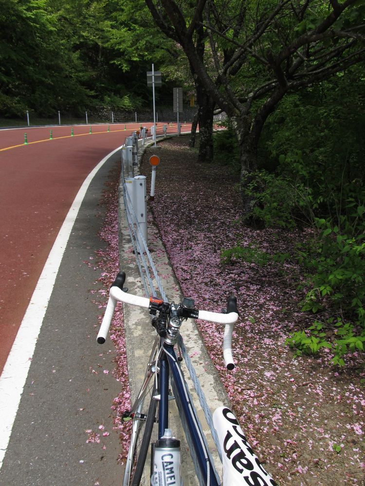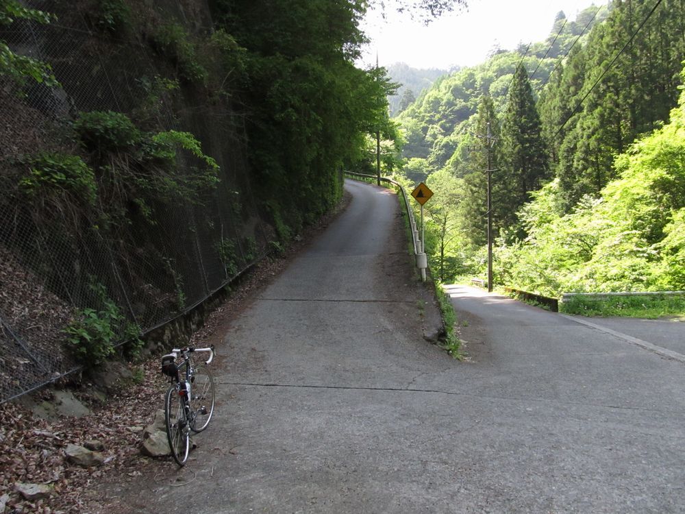 それまでは、何とかシッティングで通せたが、回せなくなり立ち漕ぎに変更。さらに、道幅が狭いにもかかわらず、耐えかねて蛇行走行。