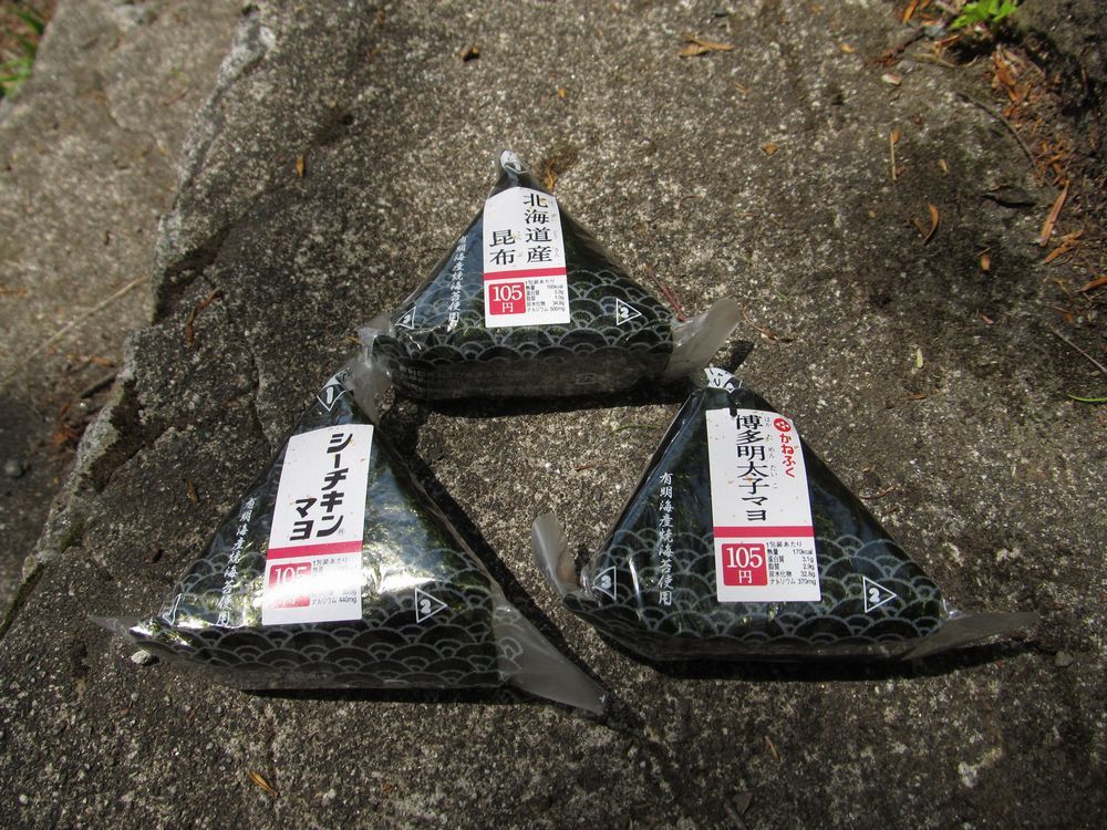 おにぎり3個。外で食うおにぎりは、やはり、旨い。