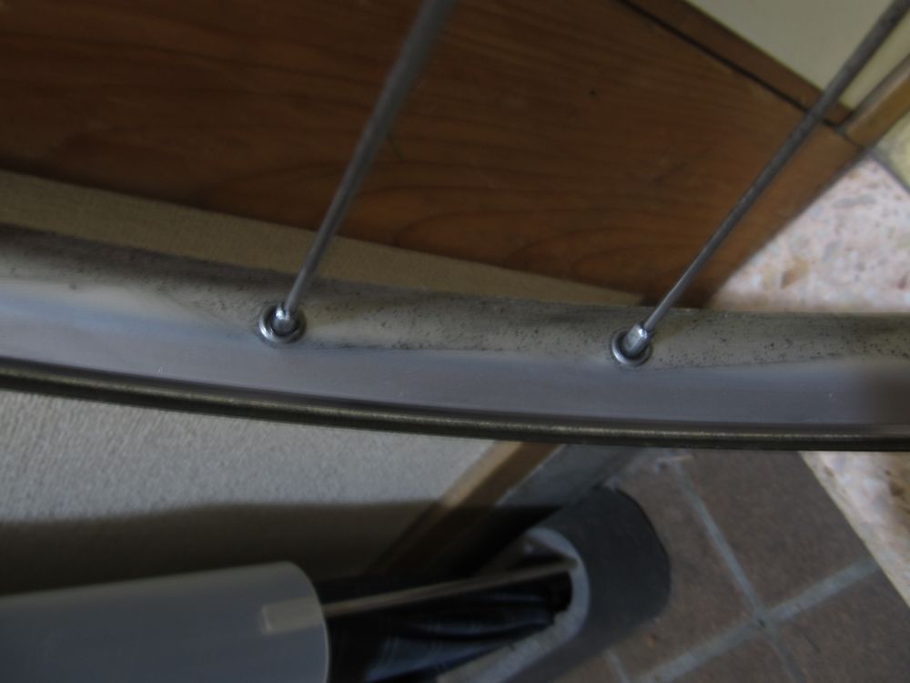 さて、パンクの方は、タイヤシーラントを入れているので、穴がふさがるだろうと空気を入れてみるが、どうも穴が大きすぎるのか、一定の圧以上になると、プシューという音とともに、エアとシーラントが抜ける。