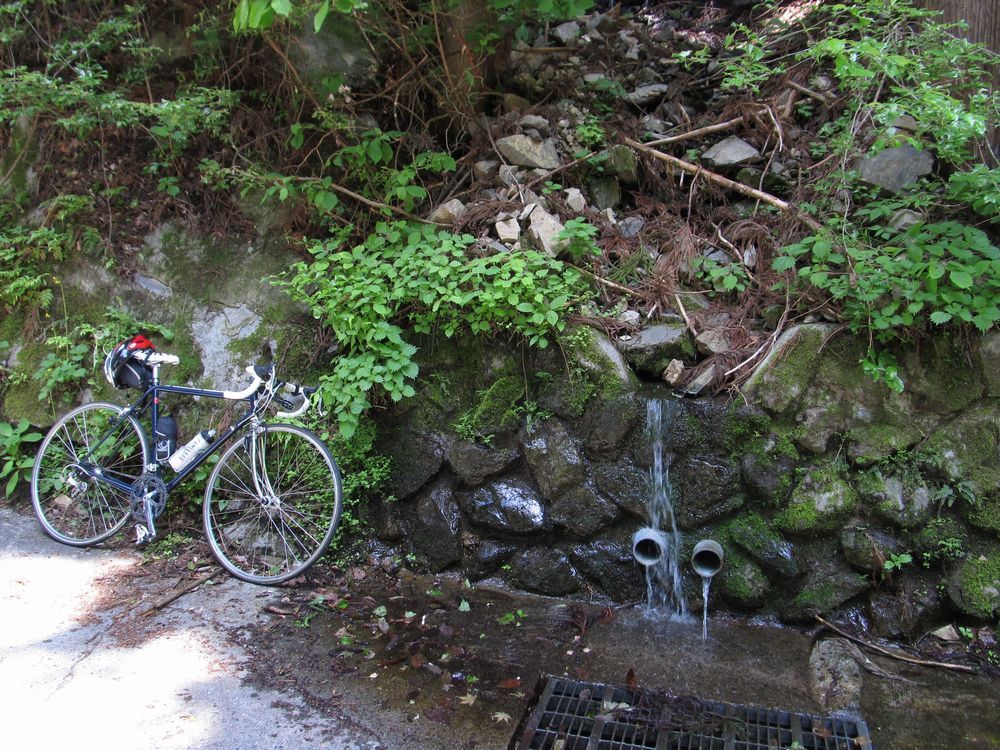 坂を越えたところに水場があり、水をがぶ飲みする。
