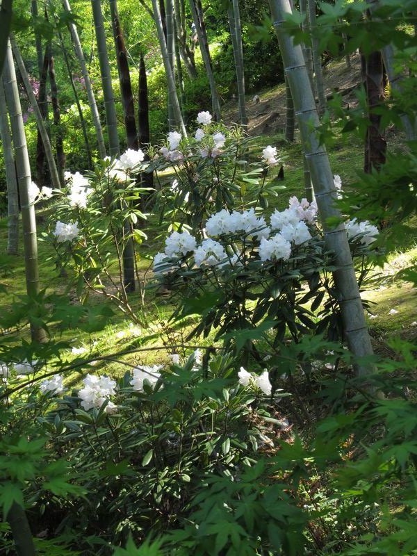 シャクナゲも咲いている。また、あちこちからタケノコの大きくなったものがニョキニョキ出ている。