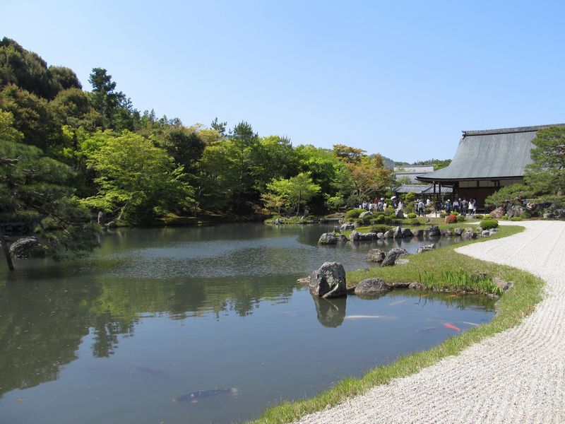 天龍寺は、建物が改修中で庭園のみの観覧となった。