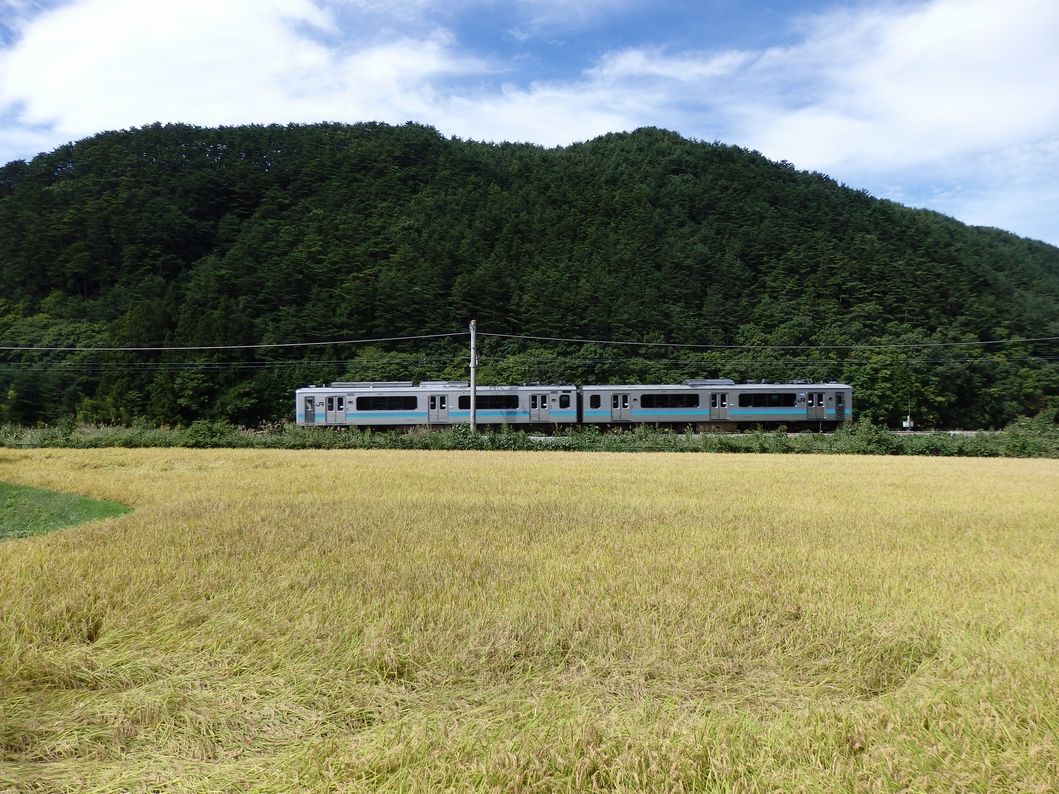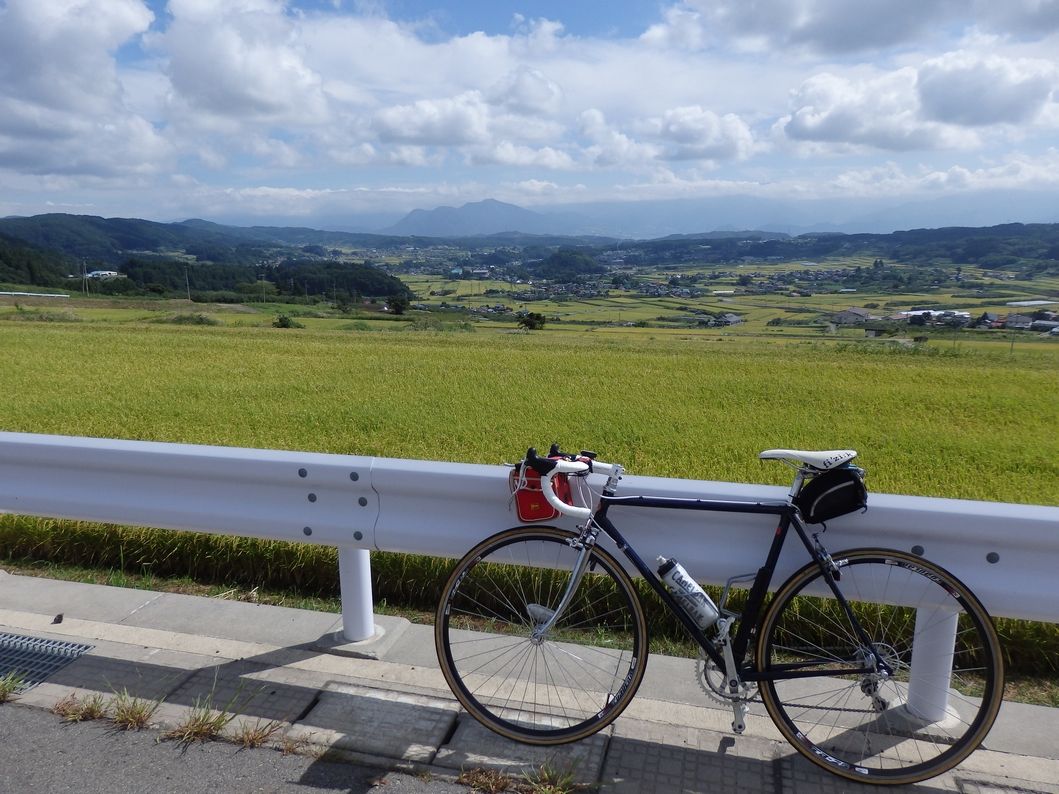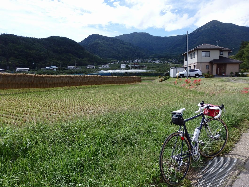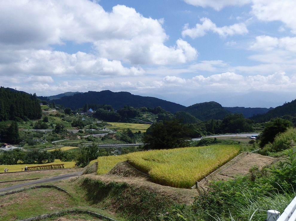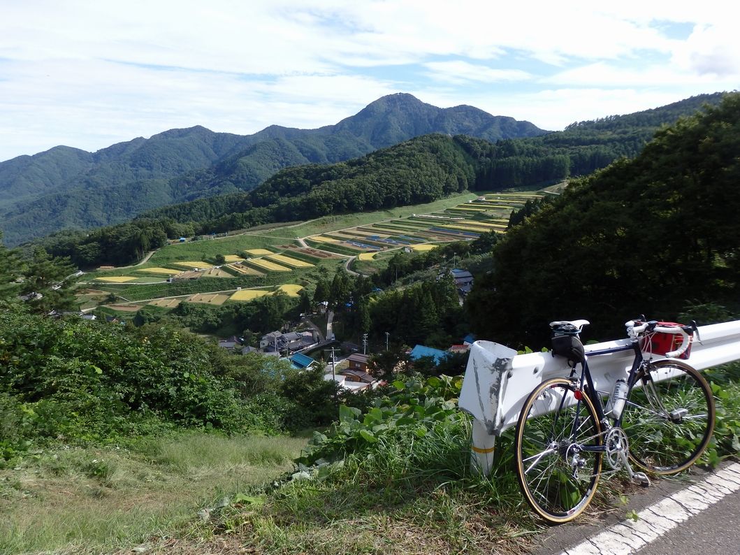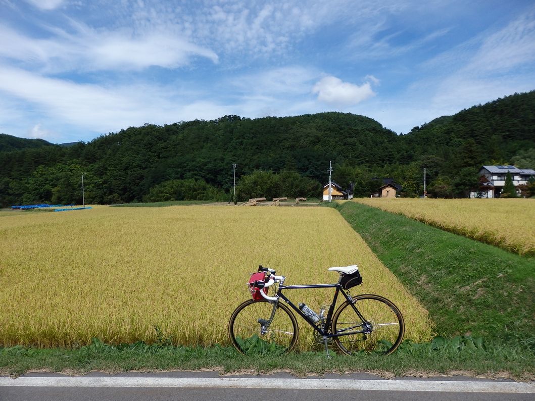 さらに下ると、今度は収穫間近で黄金色に色づいた水田。