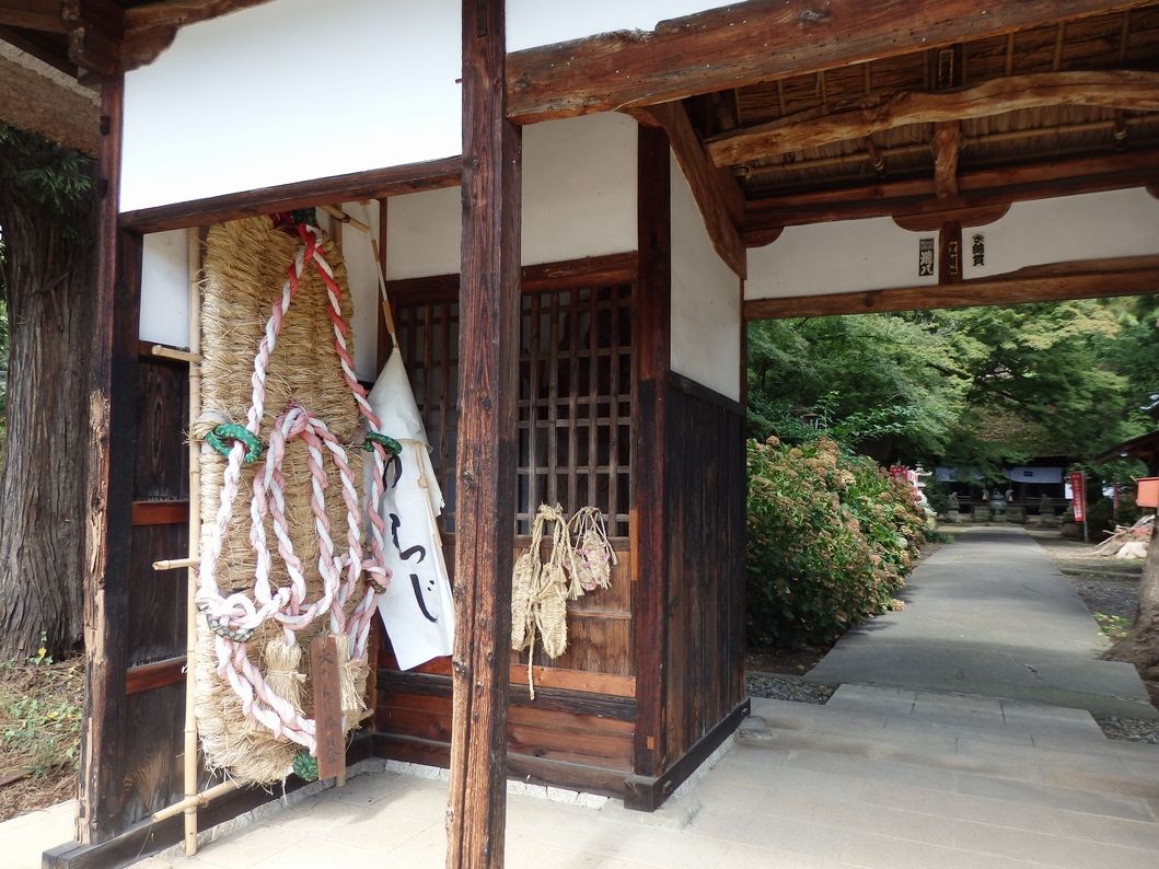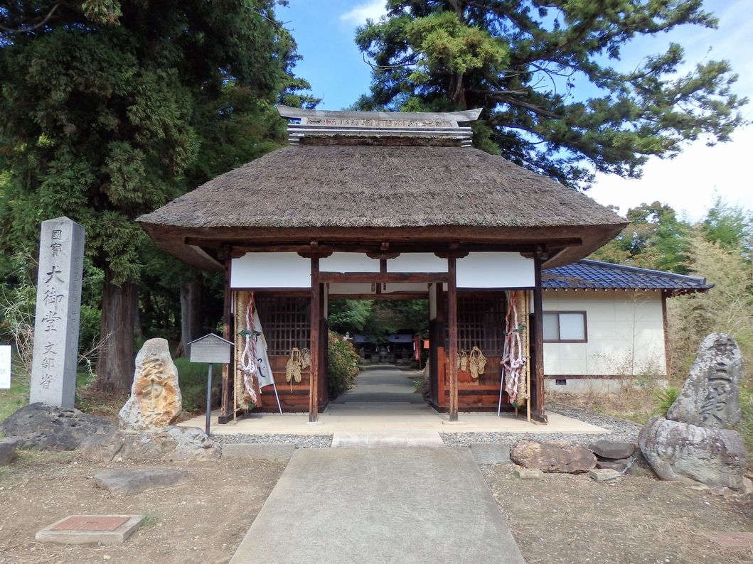 お社は茅葺き。神社と勘違いして、危うく柏手を打つとこだった。