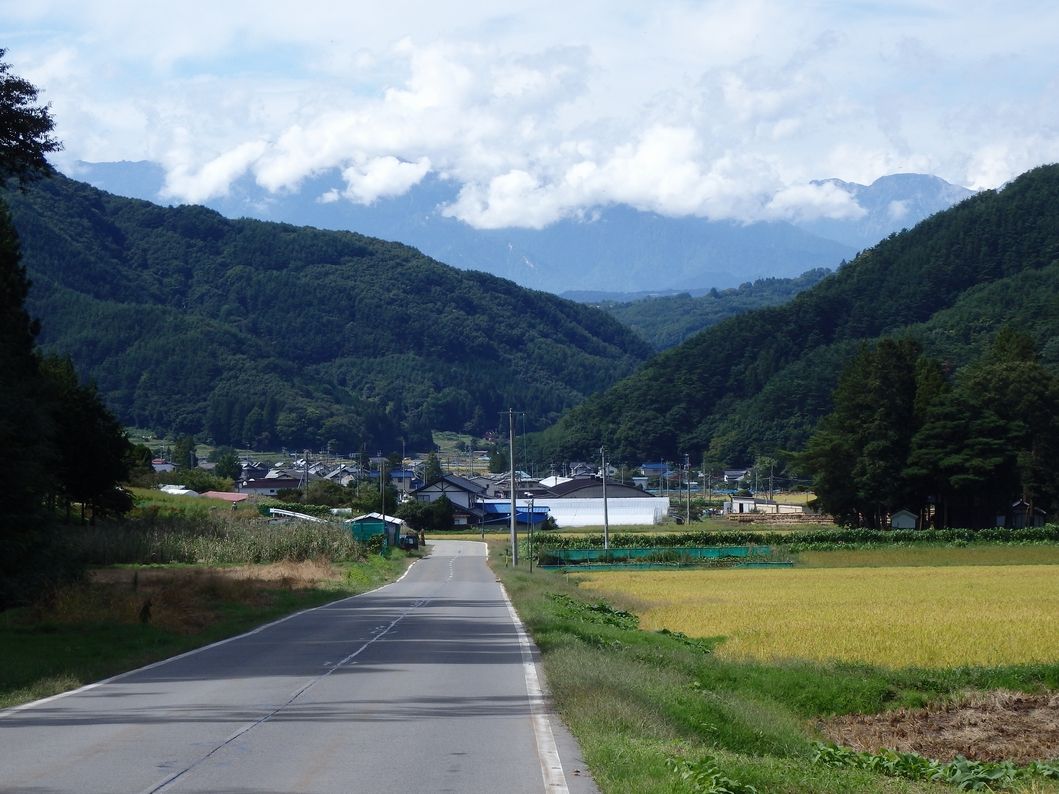 この道が結構気持ちのいい道で、これから上る山が正面に見える。