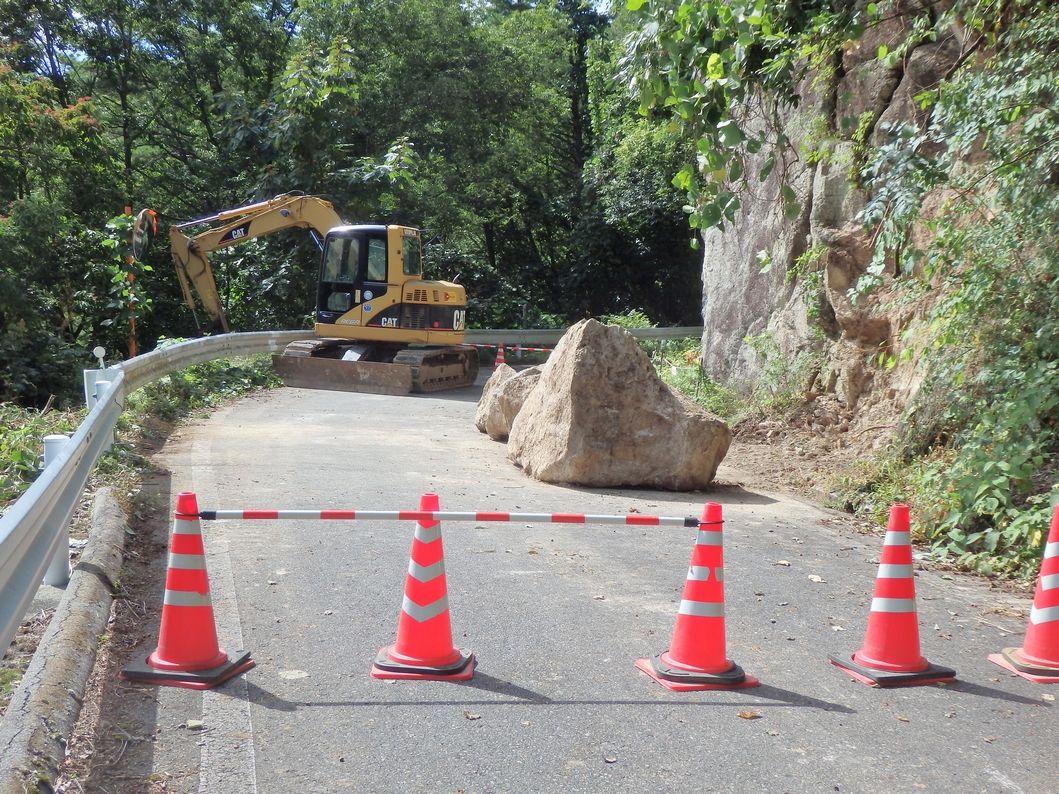 落石箇所は冠着山(姨捨山)付近だと思うし、その区間は通らず聖湖に向かう予定なので、ここは左側から通り抜けることにする。
