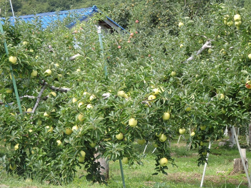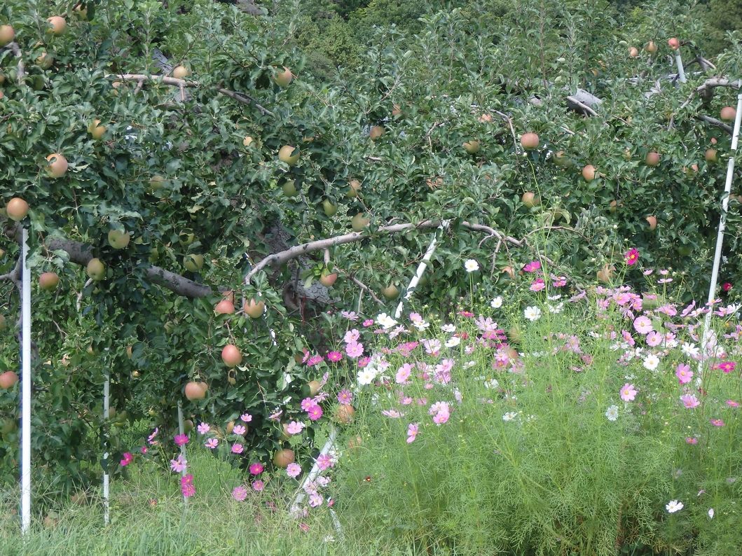 上っていくと、リンゴ畑が続く。