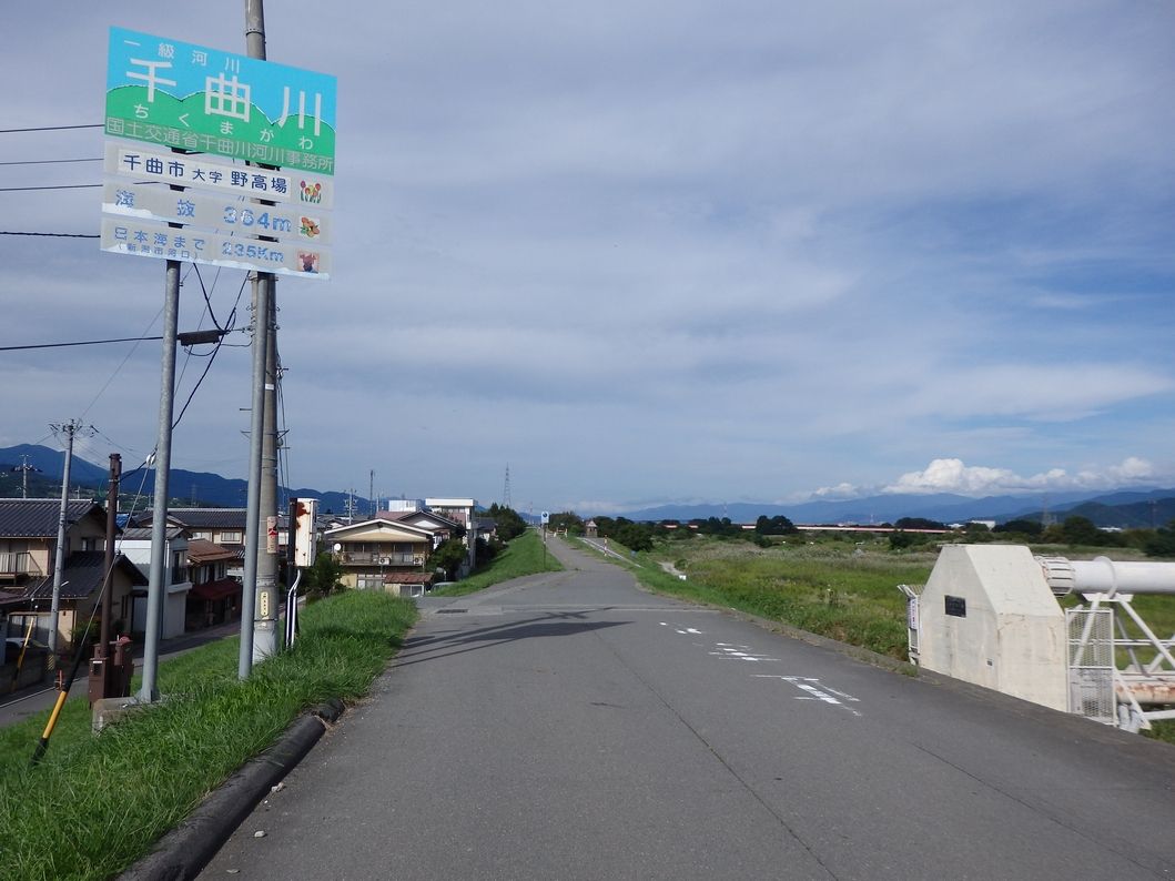 ちょうど千曲川沿いの堤防上の道があったので、そちらの道で戻ることした。