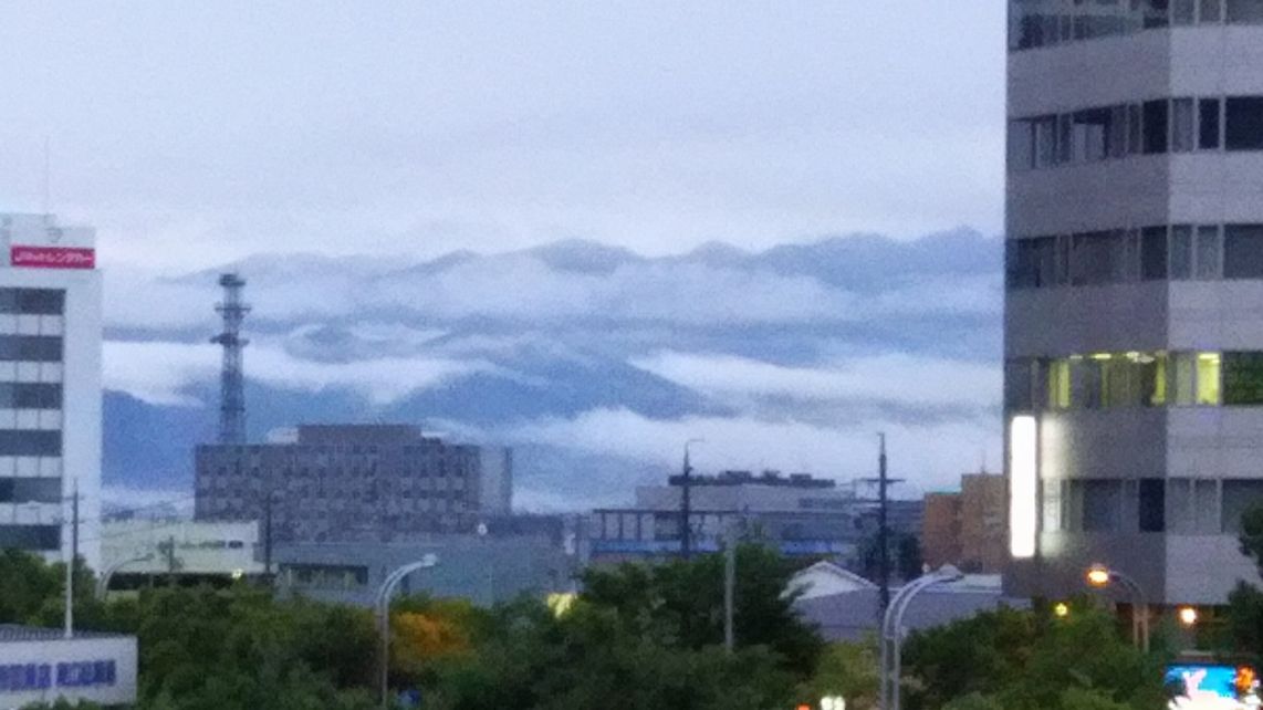 突然、正面に北アルプスの山が現れた。
