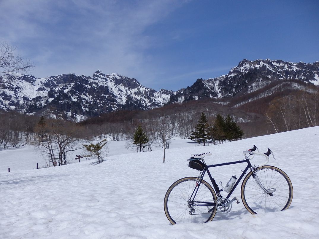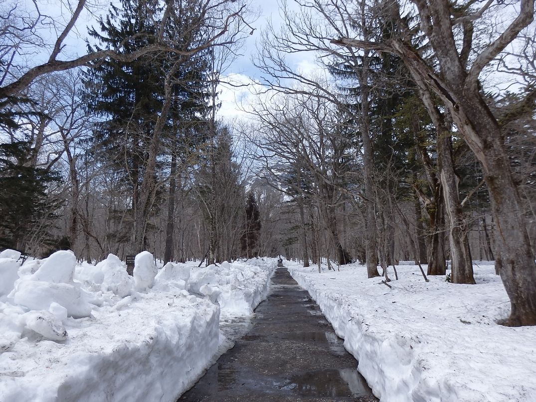 4本目の途中から渋峠を望む。電波塔の上付近が渋峠。