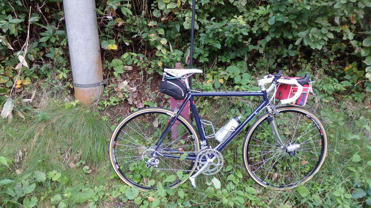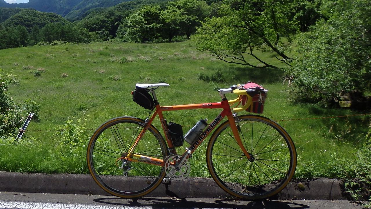フレームは一目惚れしてヤフオクで買ったものだが、車体として草原や山をバックにしたとき、なんとなく、しっくりとこない。