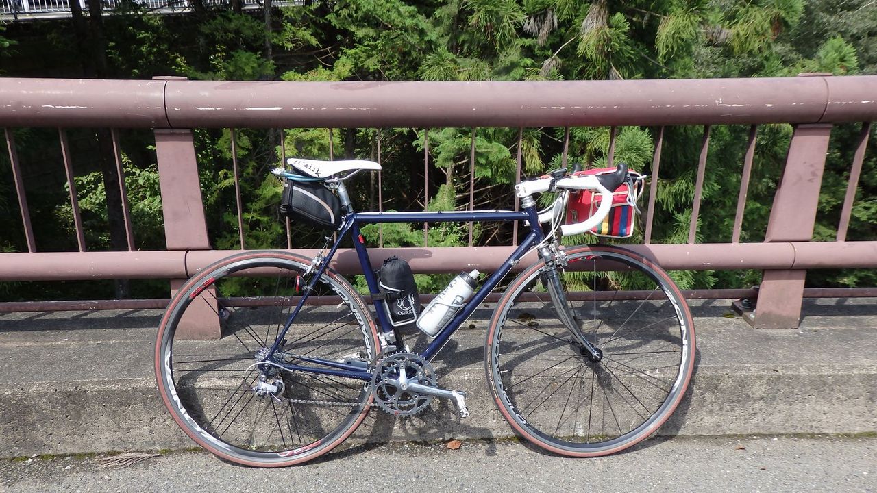 以前乗っていたクロモリよりも軽いし、下りのコーナーリングの時の安定性がいいので、逆に気に入っている面もある。