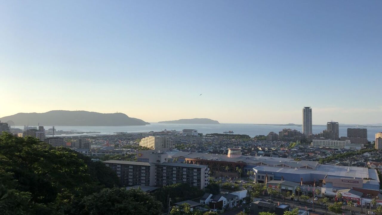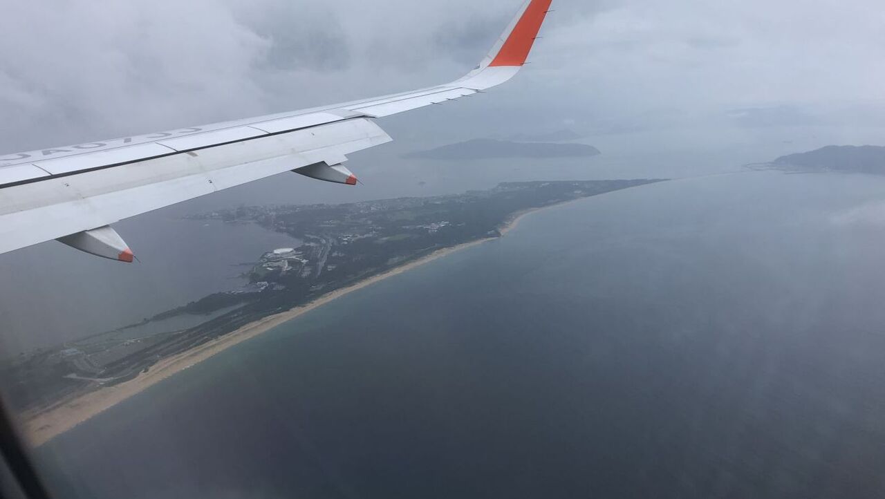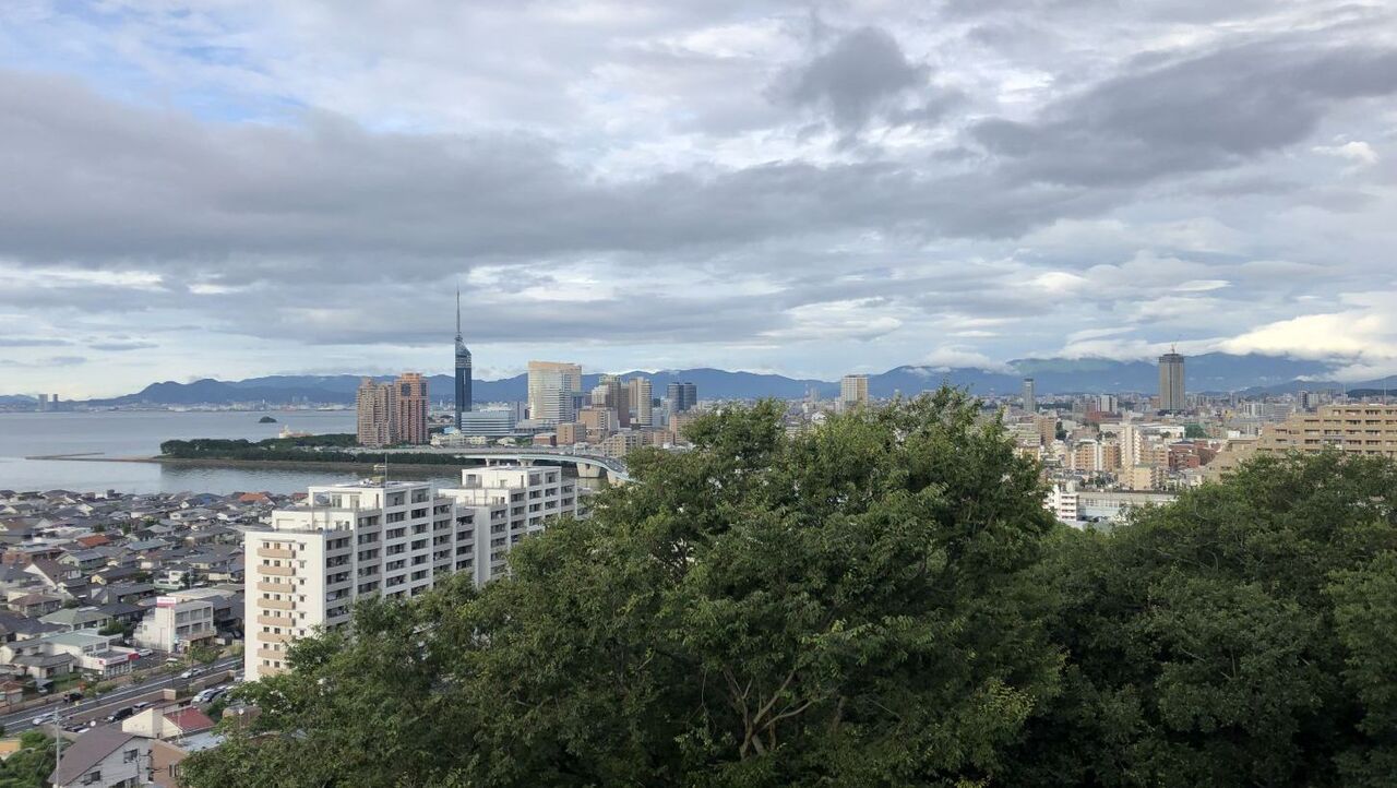 志賀島と海の中道を見ながら福岡空港に向かう。