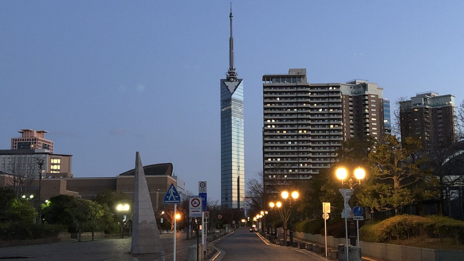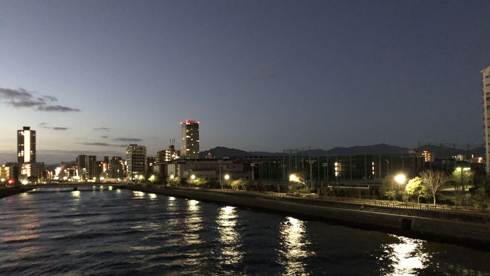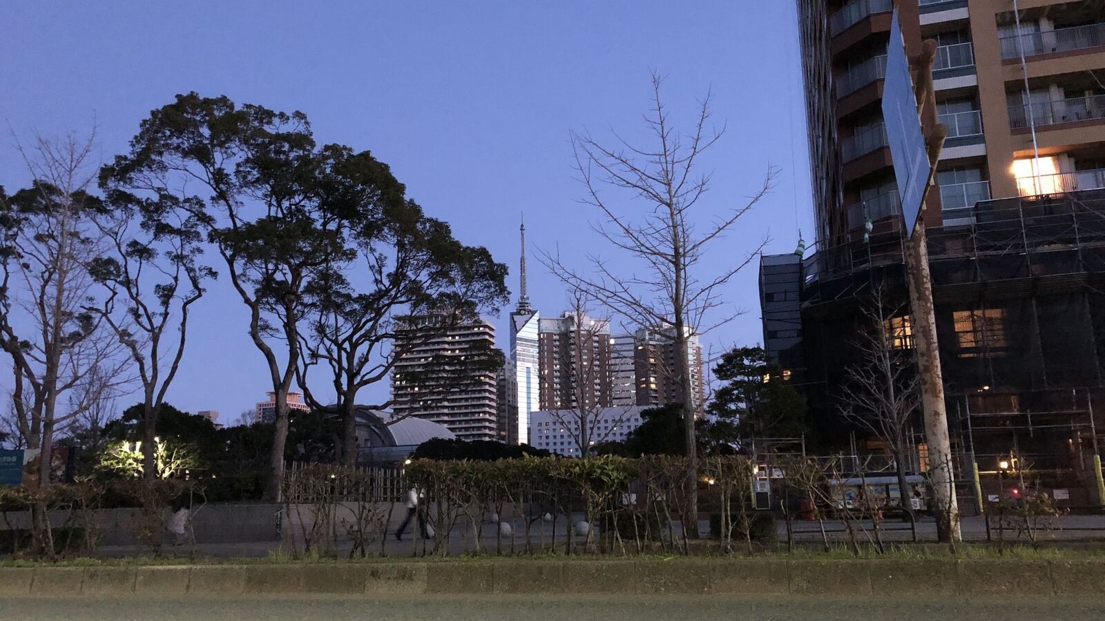 愛宕大橋を渡り、百道浜に出ると、東の空が若干明るくなってきた。