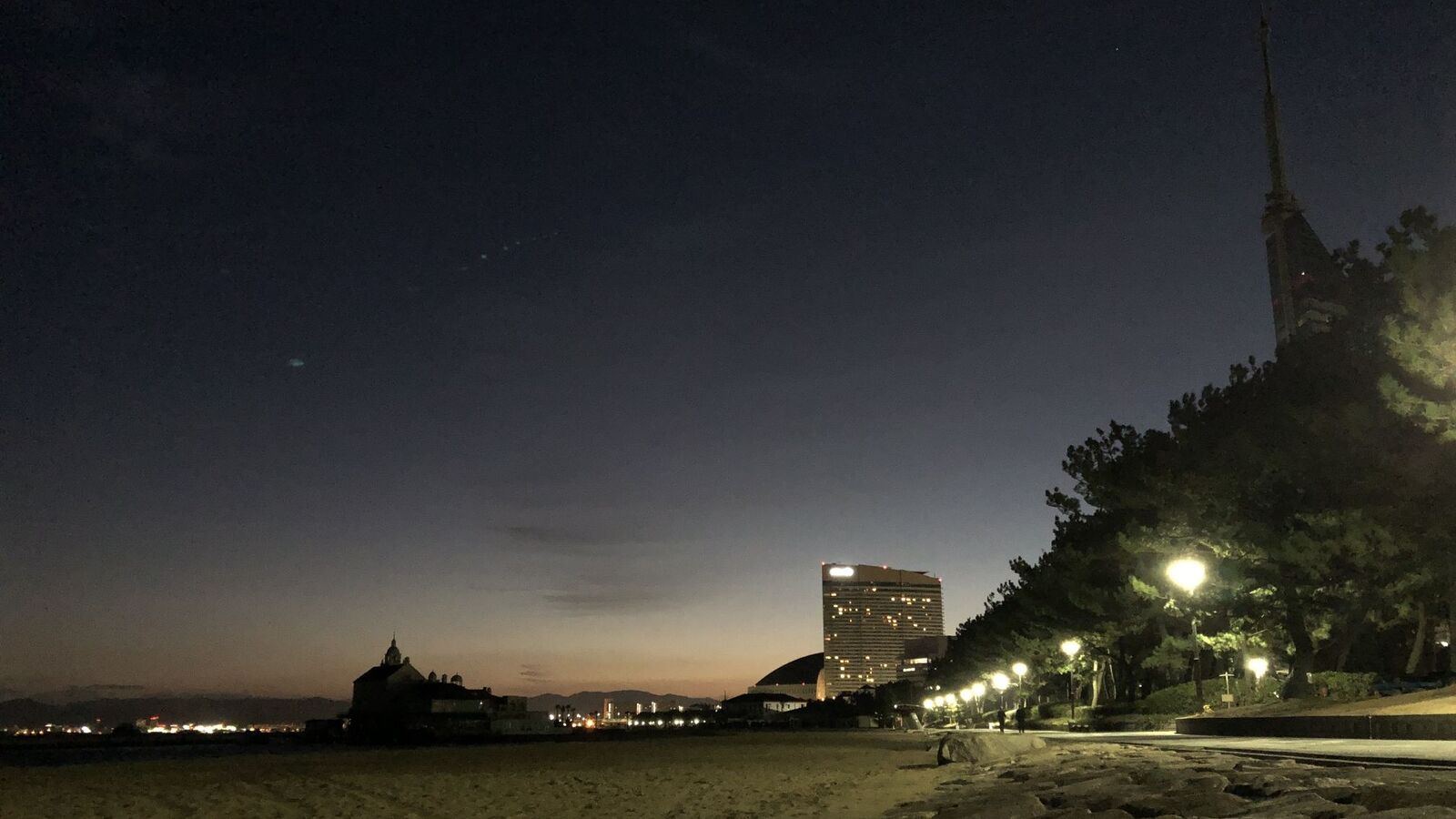 浜側はまだ暗い。