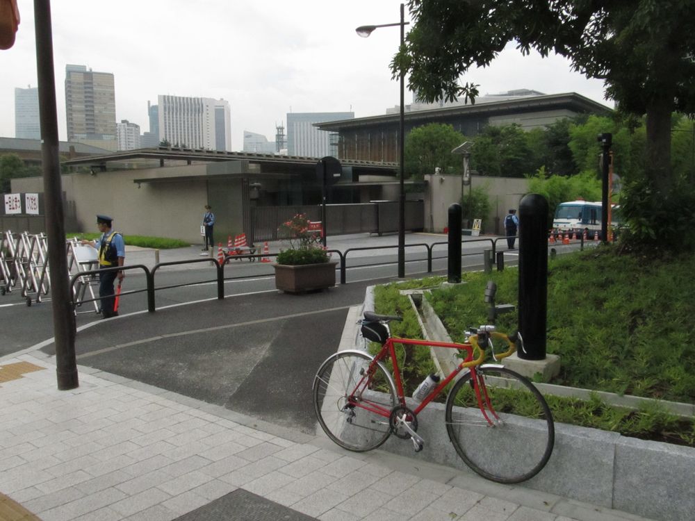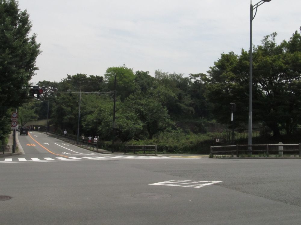 帰りも皇居外周に入り、英国大使館の近くの交差点で信号待ち。多くの皇居ランナーが走っている。