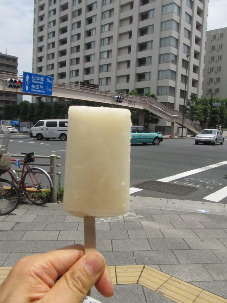 暑い季節には、やはりこれが定番。ガリガリ君の梨味。