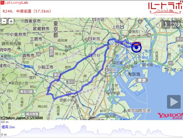 出発は、午前9時頃かな。まずは、皇居外周から、竹橋経由でR246に入る。R246を選択したのは、アップダウンがあるから。もしかして、R246の起点から走ったのかな。