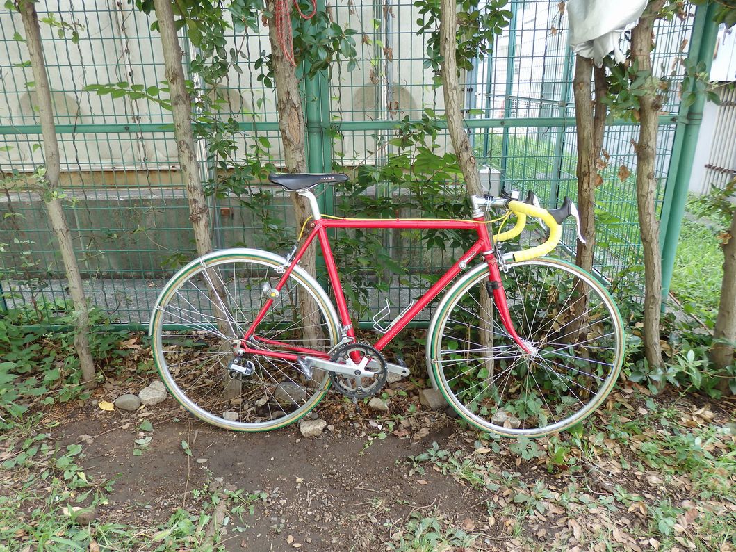 写真では良くわからないが、フレームの赤、ハンドルの黄、タイヤの緑の組み合わせが絶妙。