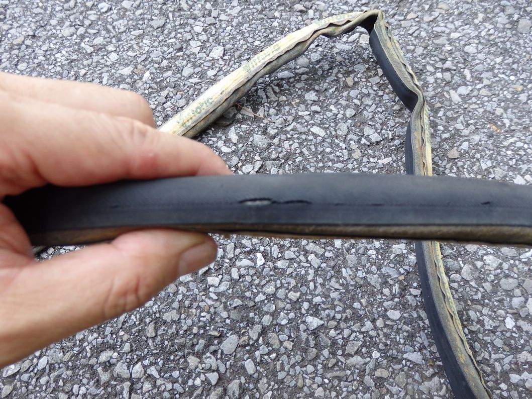 後輪はビットリアのストラダを使用していて、まだ大丈夫だと思っていたが、外しているときに劣化を発見した。