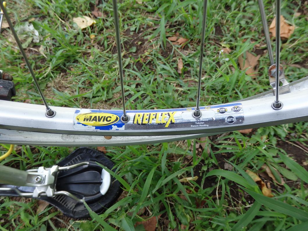 リムは、マビックのリフレックス。軽くて丈夫なリムだが、中津川林道でガツンとやってしまい、両輪とも縦ブレがある。