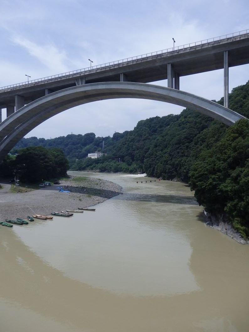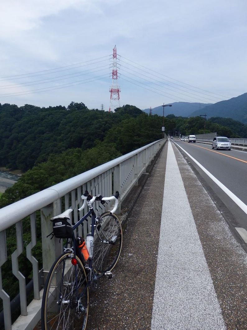 道志橋を渡る。今日は、空気中の水蒸気が多いので、景色が白みがかっている。