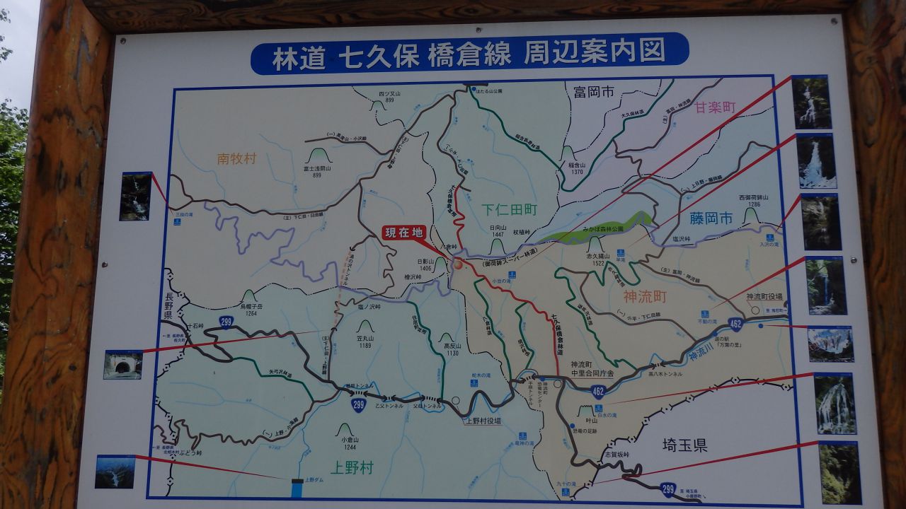 右の舗装路かと思ったが、案内板によると、神流川方面に向かう林道七久保橋倉線だった。