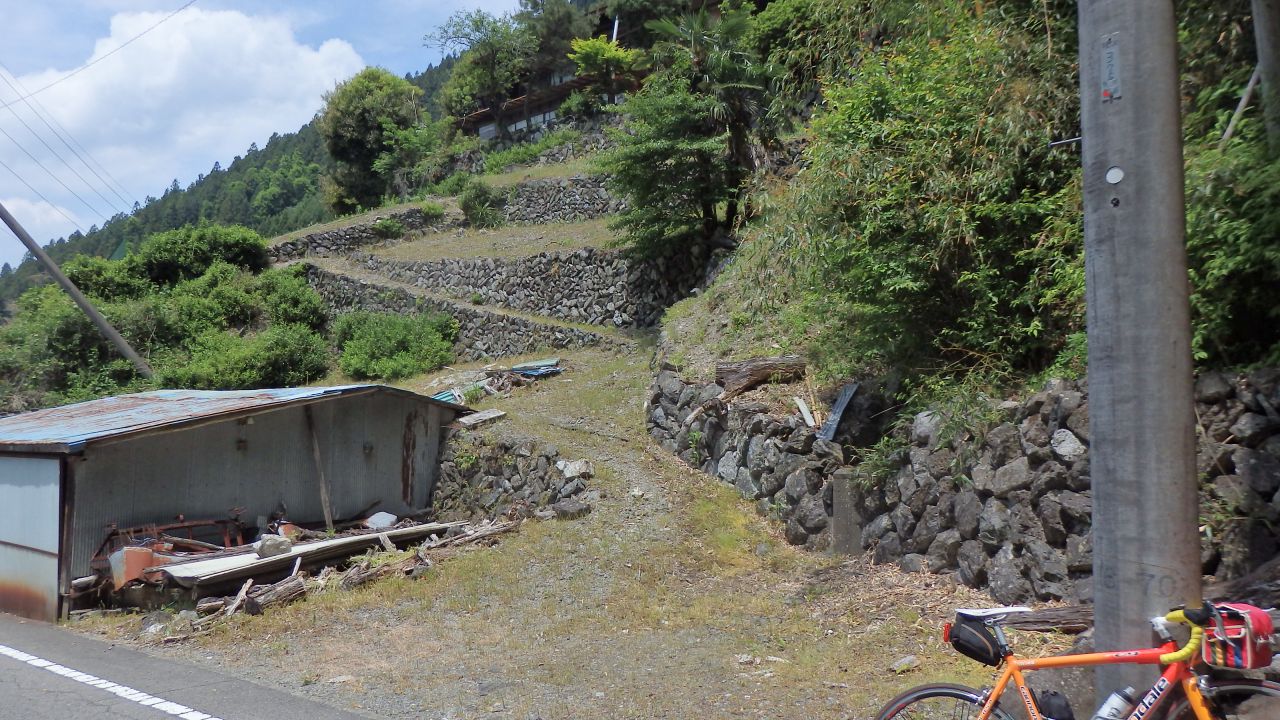 ダム下にある三波石峡と言う渓谷があるので、山肌に張り付く集落の中の道を下っていく。