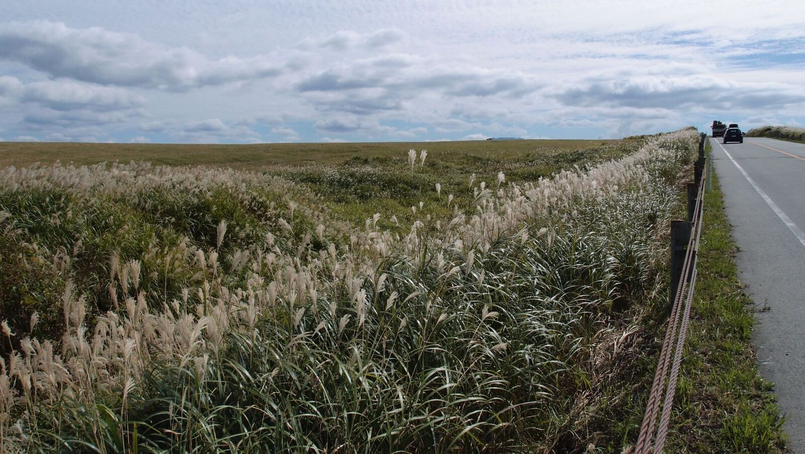 カルデラまで下りると、道はフラット。追い風に乗って進む。