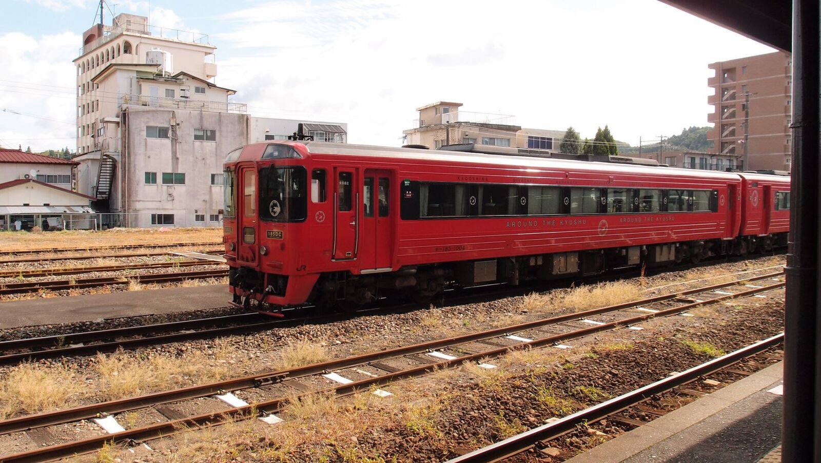 久大本線に入っからは、普通列車とのすれ違い停車があったり、走行スピードが特急とは思えないゆっくりさで、日田駅には約40分遅れで到着した。