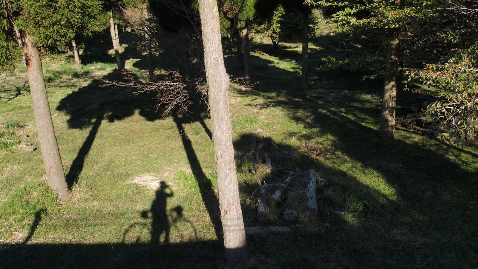 しかし間もなく、坂の途中で左側の金網フェンスに絡まっていた蔓が除去されていたので、なにげなく止まって下を覗いてみたら、なんといい風景が待っていた。