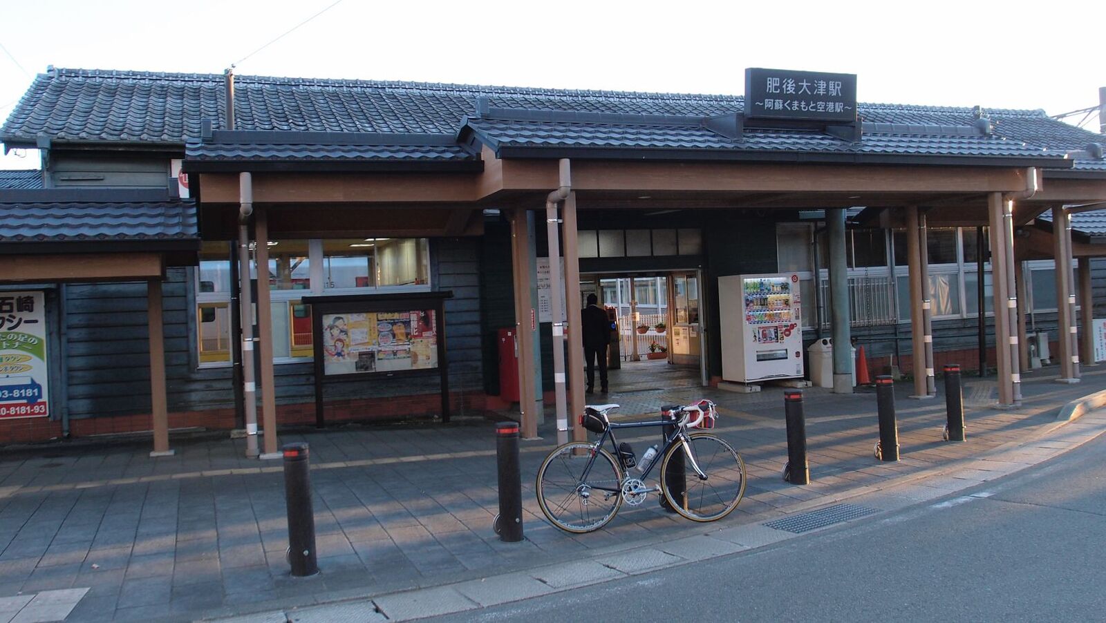 強い西日で道路標識がよく見えなかったりしたが、無事ゴール地点の肥後大津駅に到着。