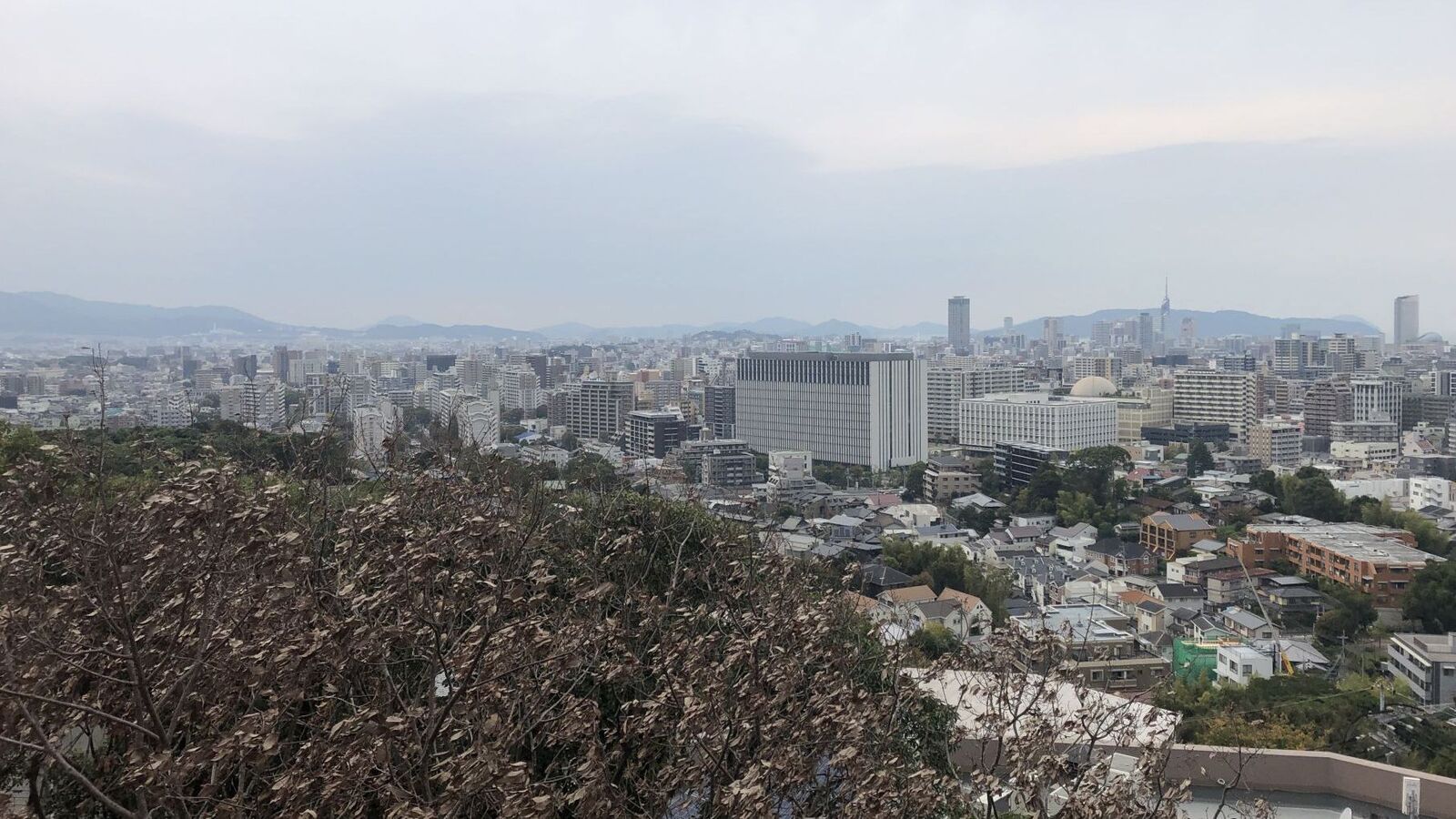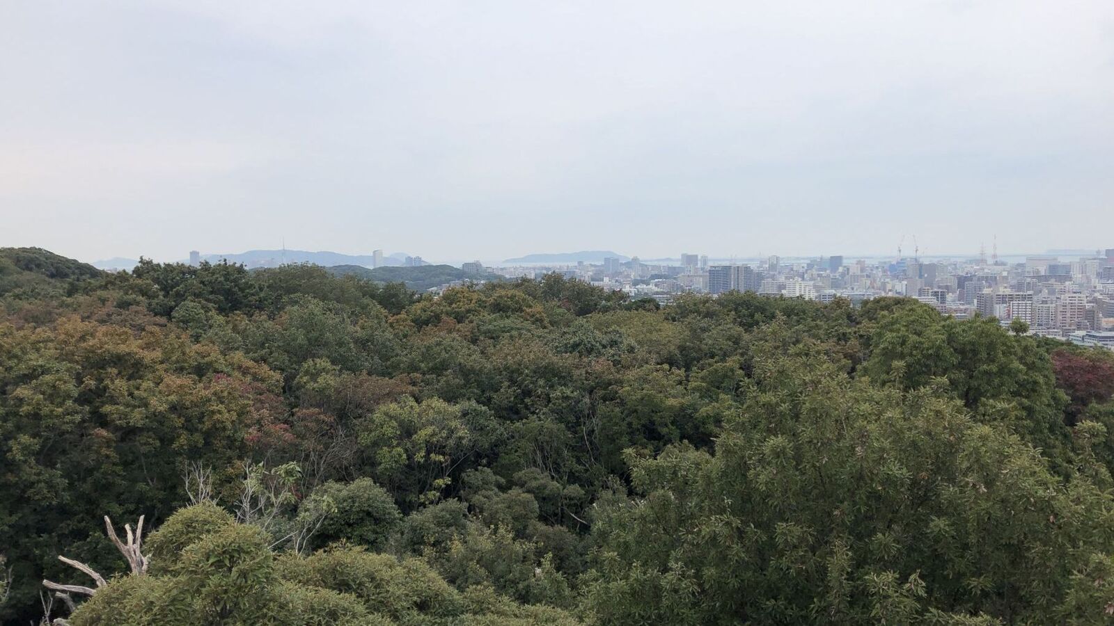 鴻巣山と、後ろには脊振山系。志賀島やPayPayドーム。