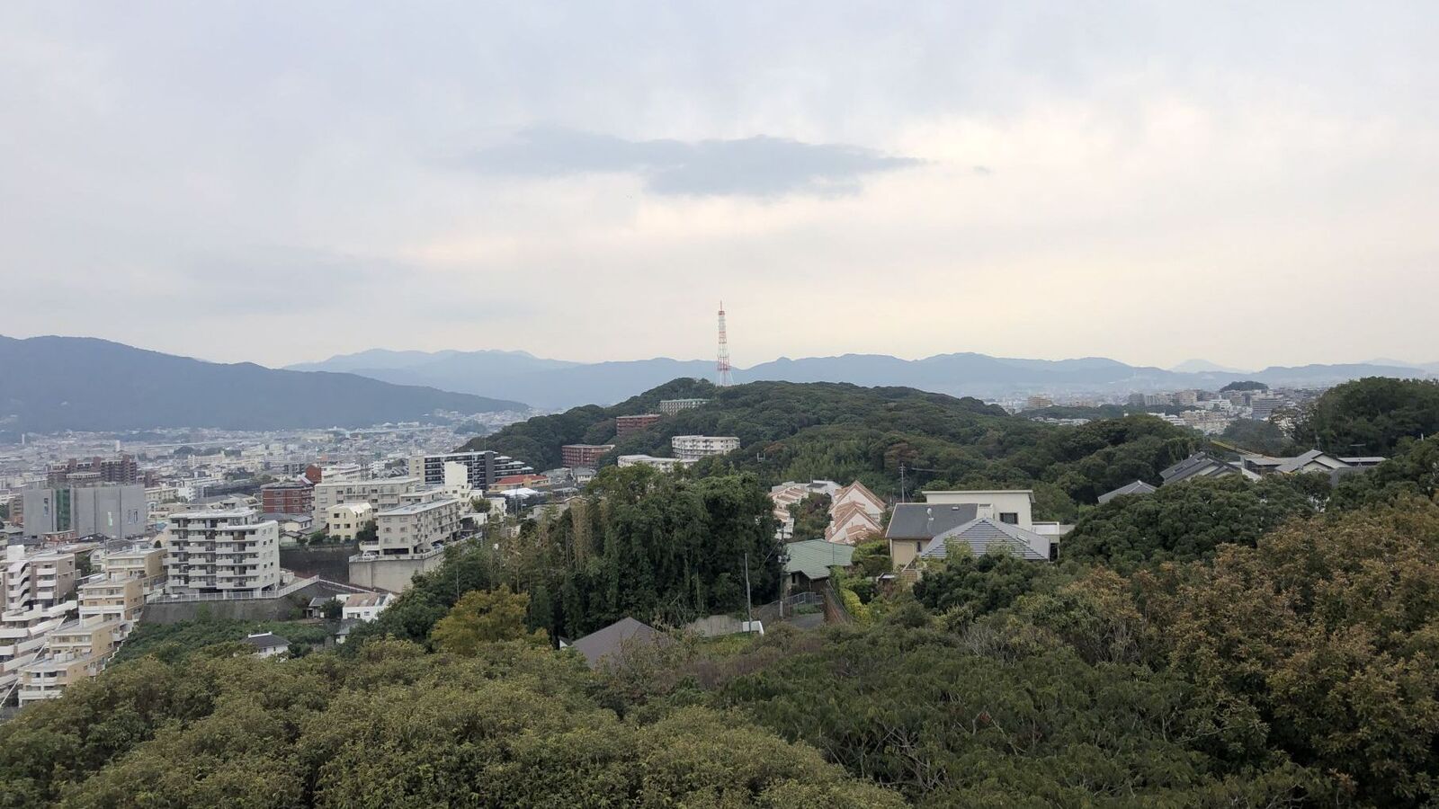 まずは、鴻巣山の隣、平和南緑地の展望台に到着。